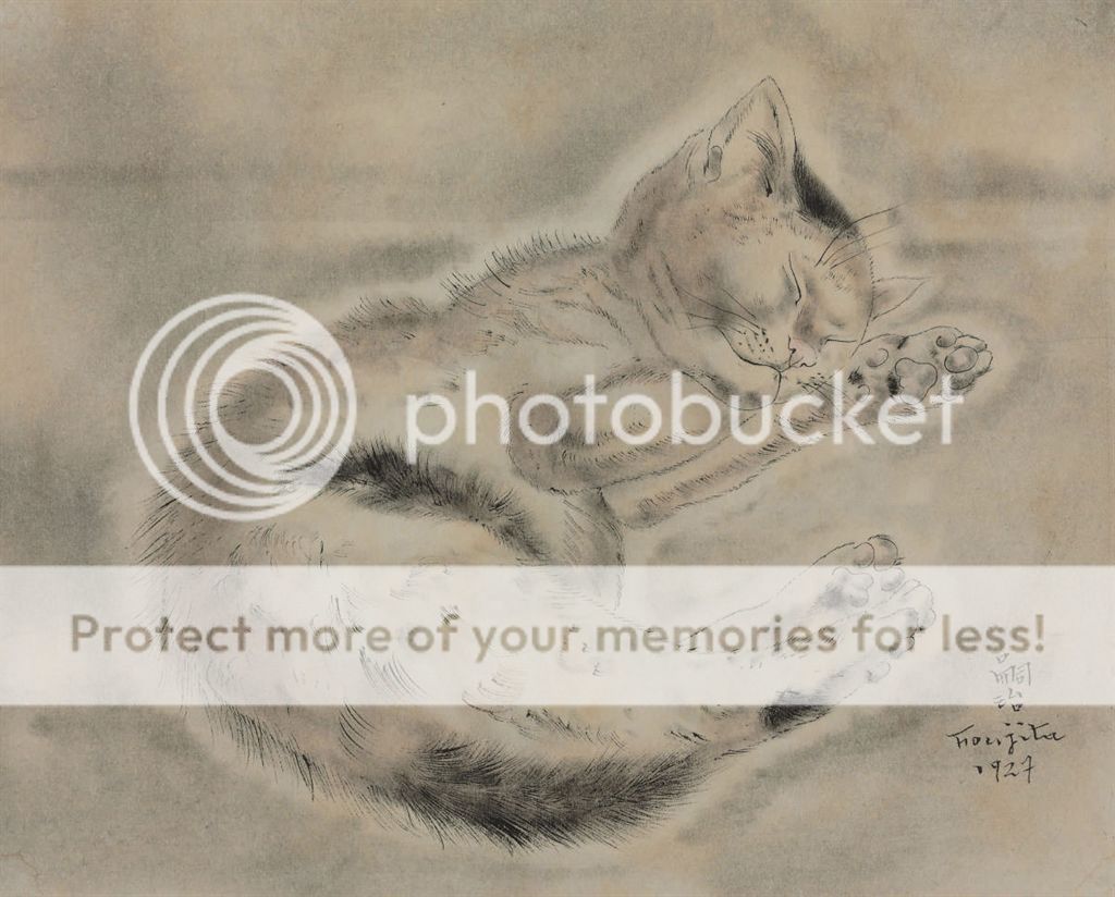 Chaton endormi / kitten asleep, Leonard Tsuguharu Foujita / 藤田嗣治 (1886 - 1968)